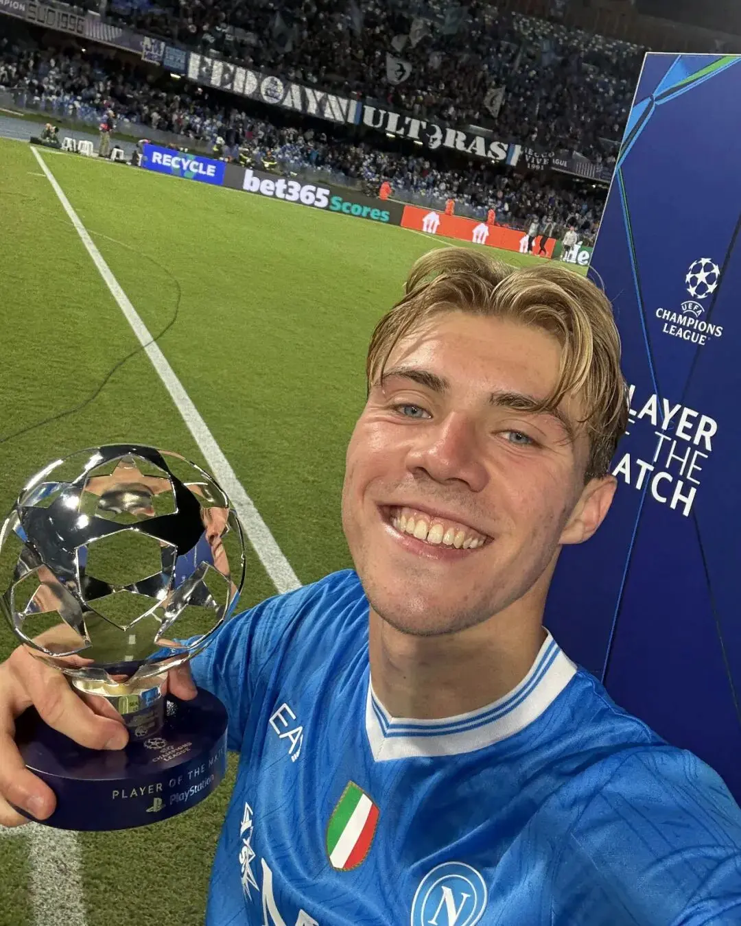 欧冠小组赛联赛阶段第2轮比赛,那不勒斯2-1击败葡萄牙体育。本场比赛,从曼联租借至那不勒斯的前锋霍伊伦在比赛中梅开二度,将个人本赛季的俱乐部进球数提升至4个,继续着他在重返意大利后的出色表现。而为他送上两次助攻的,则是昔日同场对手德布劳内。